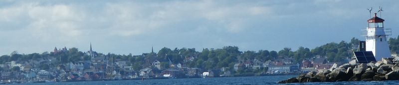 Around the corner, and past Point Enrage, Rose Point and Rose Bay (considered anchoring there) the strong wind rushed us up the estuary to Lunenburg Harbor, getting up to 7 knots. It was unclear how the moorings worked, they had no pennants, so we, with our very little draft, anchored on the edge of the innermost harbor.