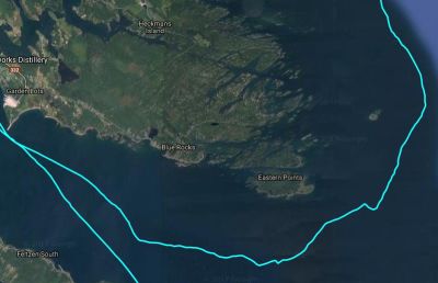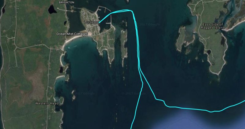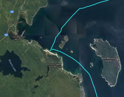 We were past Cape Sable now, the rounding of which turned out to be a non-event. We are looking at Nova Scotia's South Shore. We are out of the big tides although there are still tidal currents influenced by the Bay of Fundy along the South Shore.